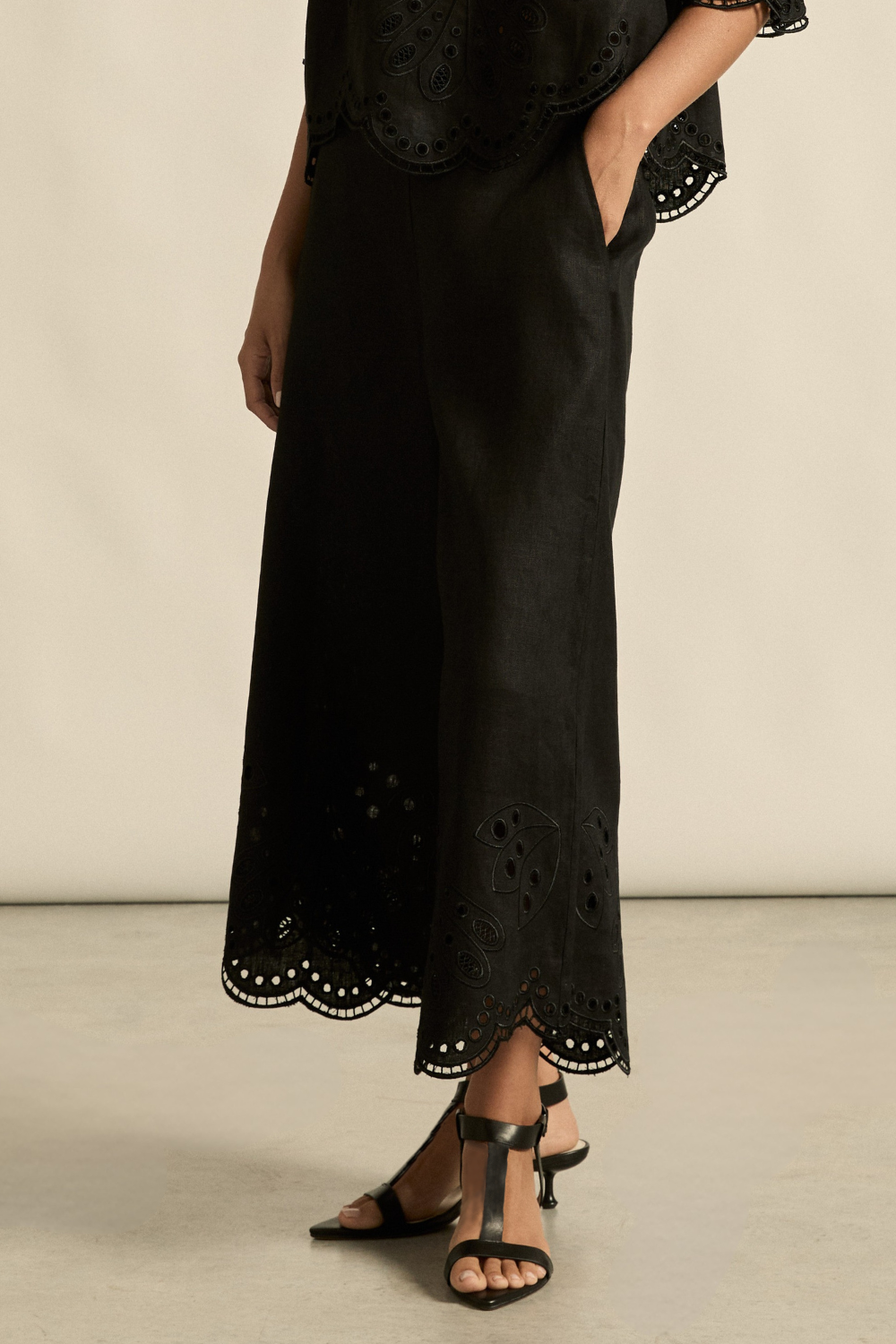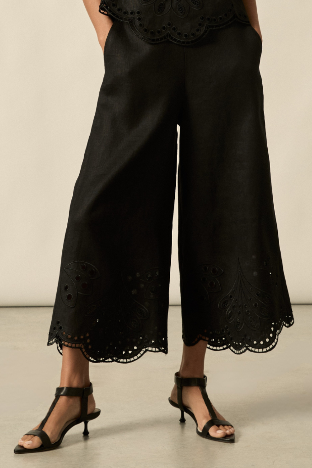 embroidered with a delicate floral motif and finished with a scalloped hem, the apprise pant is a refined take on vacation dressing. see product details below.