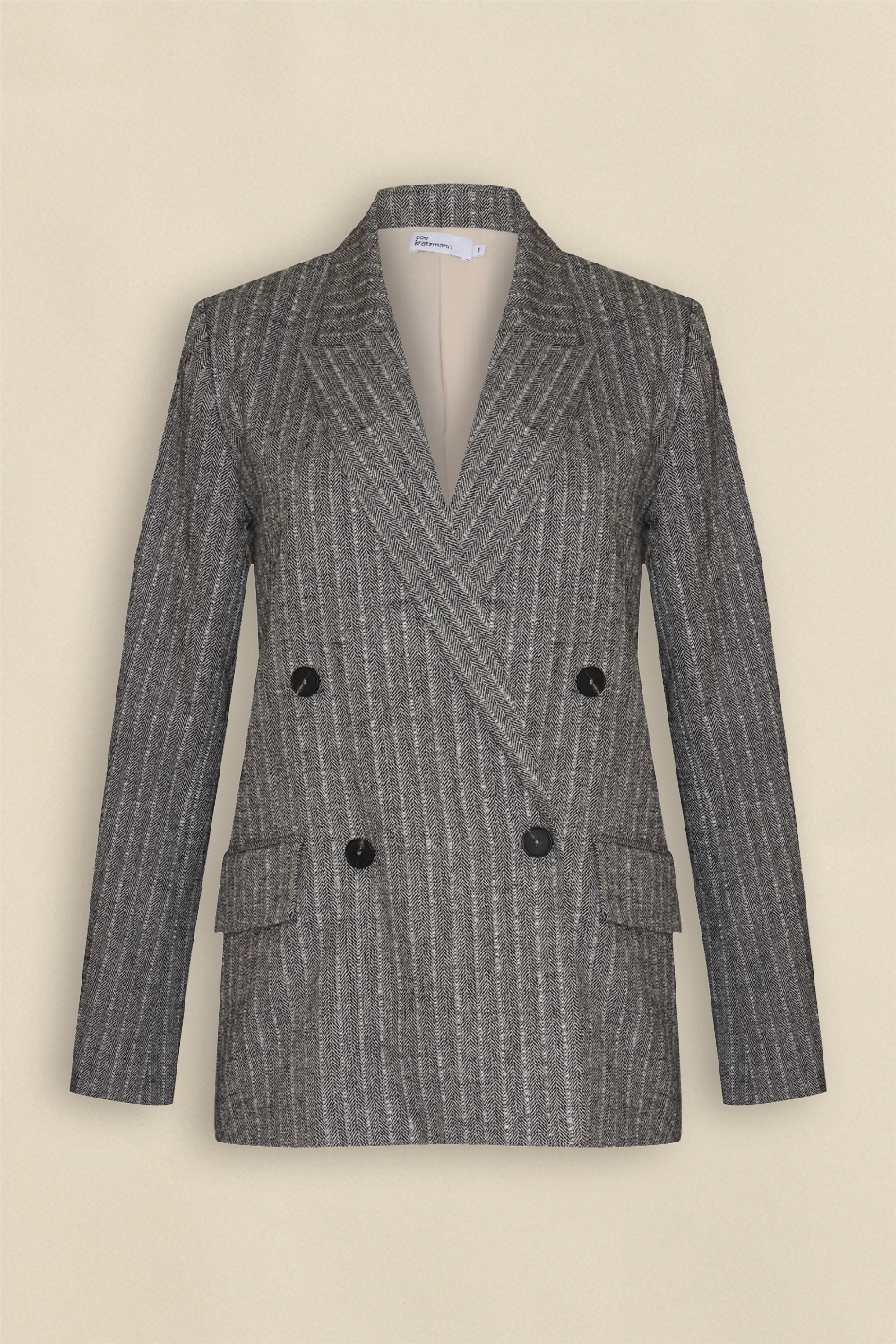 This double-breasted jacket elevates transitional dressing with tailored elegance. see product details below.