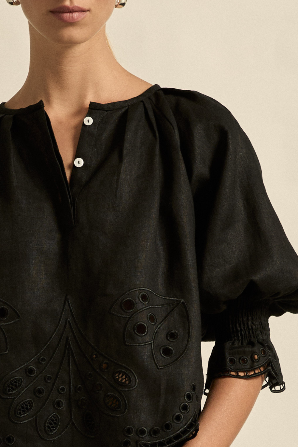 a fresh approach to volume and texture, the dawn top offers bespoke embroidered artistry. see product details below.