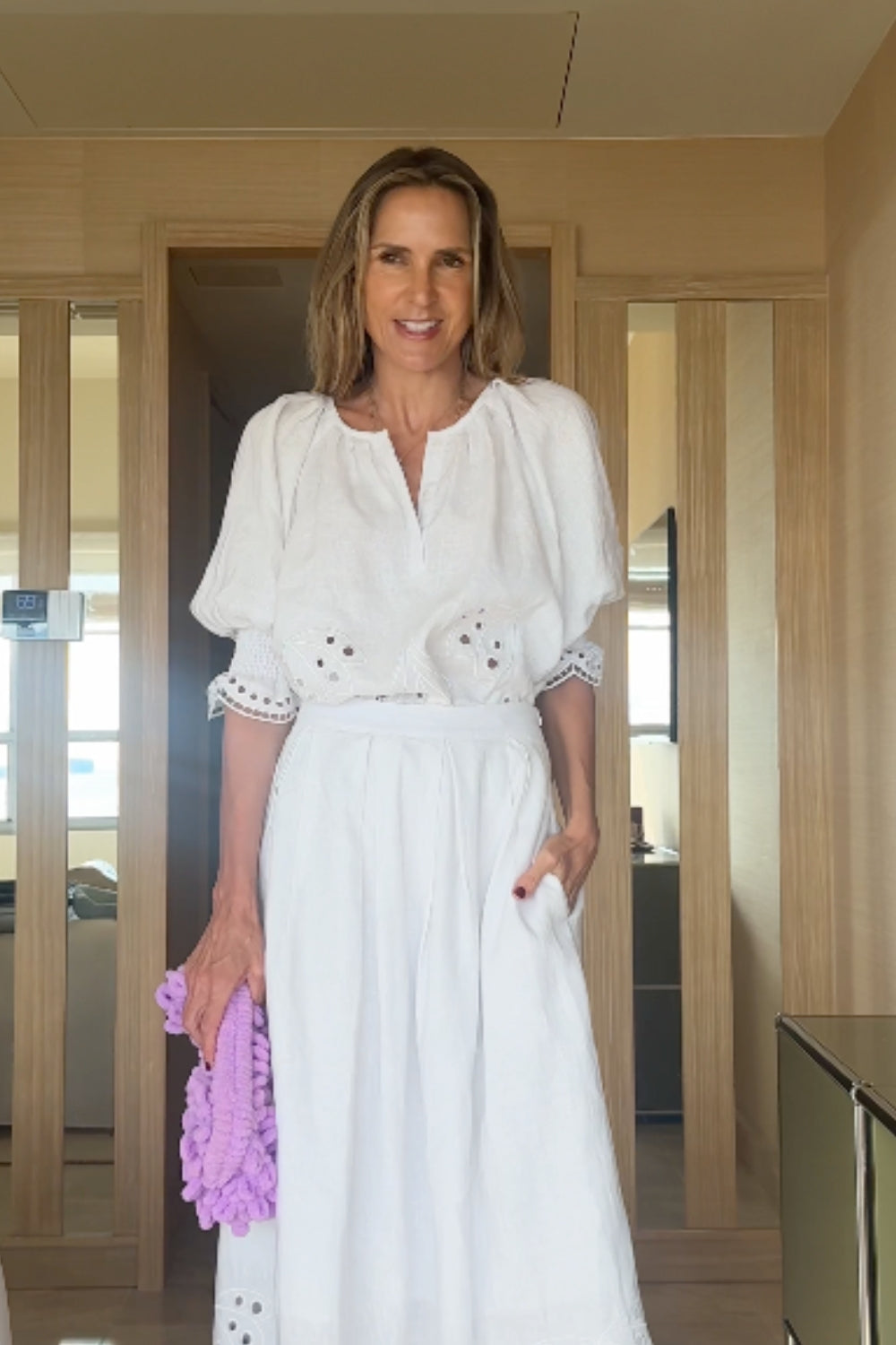a fresh approach to volume and texture, the dawn top offers bespoke broderie artistry in a soft porcelain hue. its relaxed silhouette and soft raglan sleeve give it a sense of ease, while the scalloped hem adds feminine polish. see product details below.