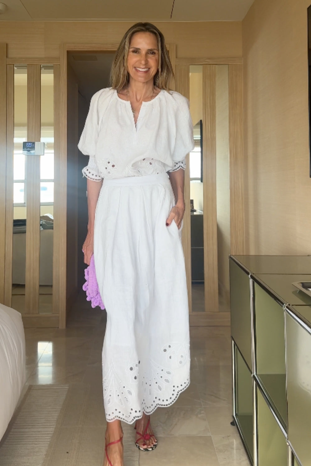 - bespoke broderie hem and sleeve in floral motif