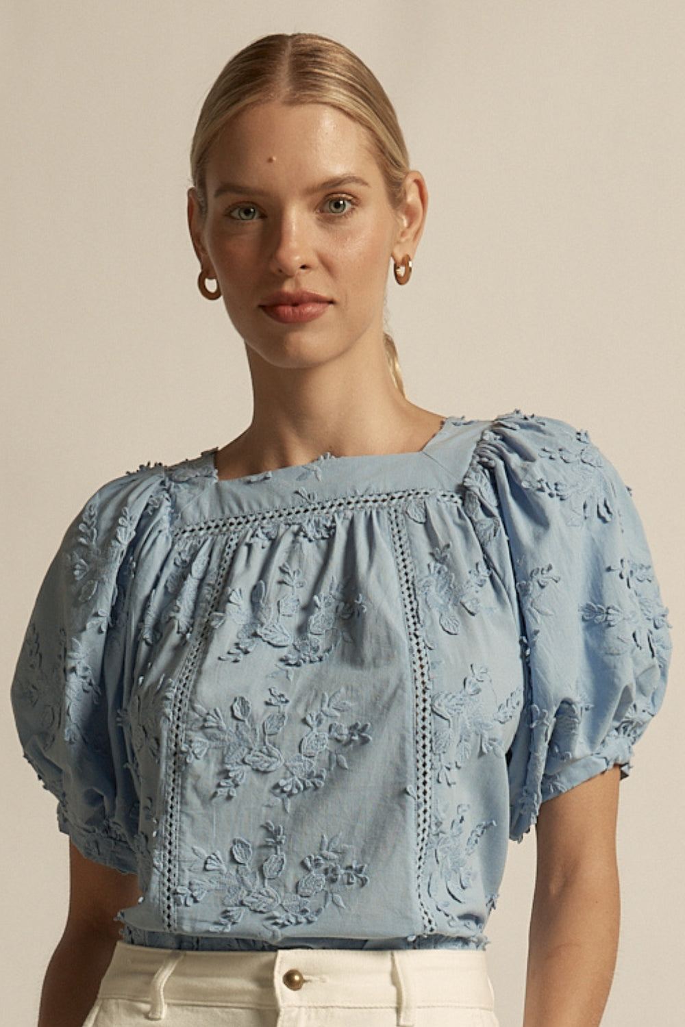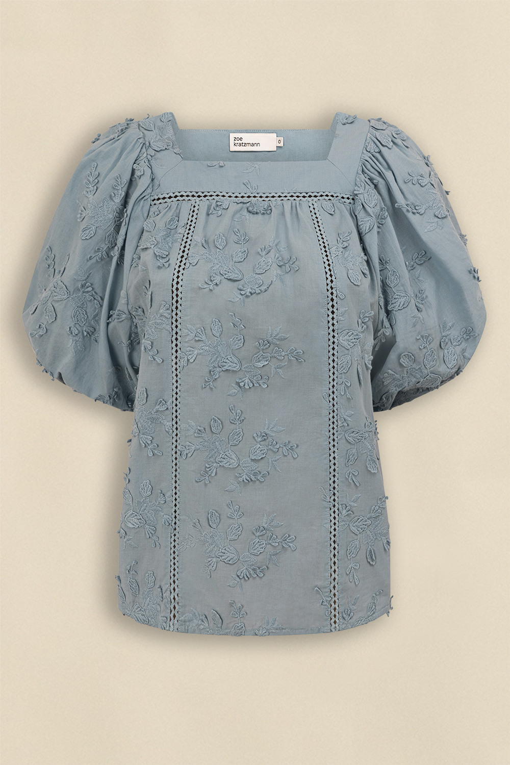 the ode top, where broderie detailing and lace trims blend adding romantic detailing to a timeless blouse. See product details below.