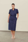 crafted in cotton poplin broderie, the portside dress is shaped with precision. linear broderie creates a modern and flattering aesthetic. a scalloped hem and cuffs add refinement and versatility.