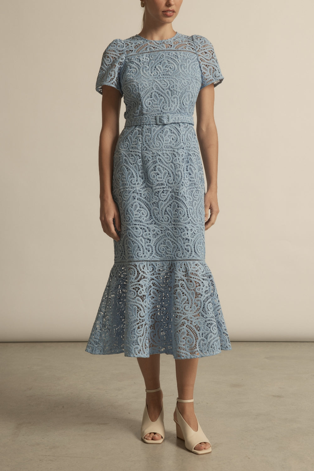 crafted in lace, the sundown lace dress balances statement detailing with wearability. With refined shape throughout, the sundown is made for event dressing. crafted in pond, a cool and refreshing shade of blue. equally as flattering as it is feminine.