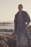 a modern classic with quiet strength. the vesper dress refines a timeless silhouette through considered detail and proportion. A deep blue floral with subtle contrast, Moonstone Garden offers a refined take on romance with a modern, darker edge.